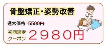 【骨盤矯正・姿勢改善】の初回限定クーポンご利用の方は、予約の際お申し付けください。