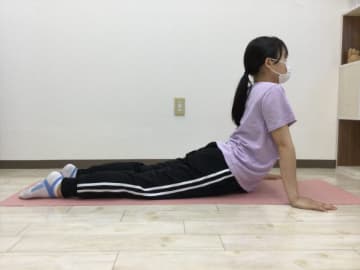 - 両手を床について腕をしっかり伸ばし上半身を持ち上げる