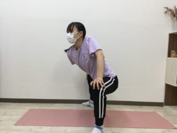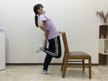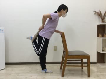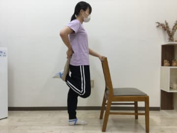 - イスに掴まり右足を右手で掴む