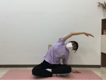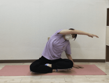 - 片腕を頭の真上に上げゆっくり息を吐きながら横に倒す