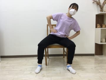 - 背筋を伸ばし、膝に乗せた腕を支えにして片側の方を内側に入れ重心を真下に落とす