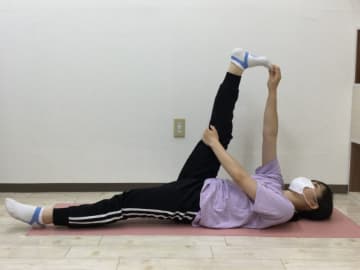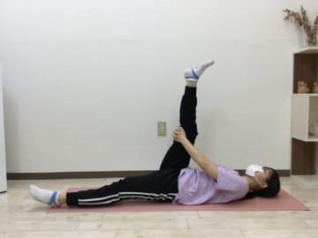 - 仰向けに寝て、片方の足を真上に上げる