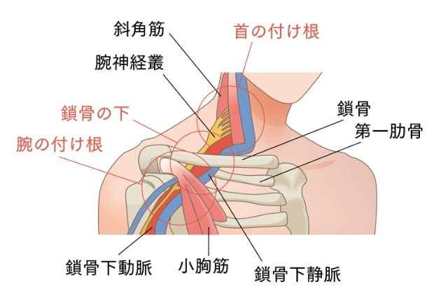 - 肋鎖症候群 (鎖骨の下)